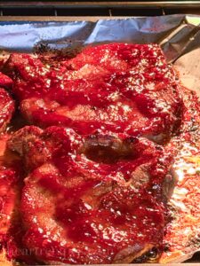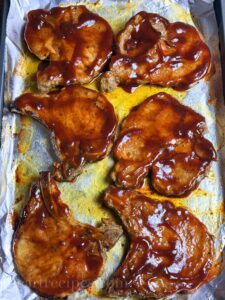 - Remove from the oven and brush or drizzle on bbq sauce on each side of the pork chops.