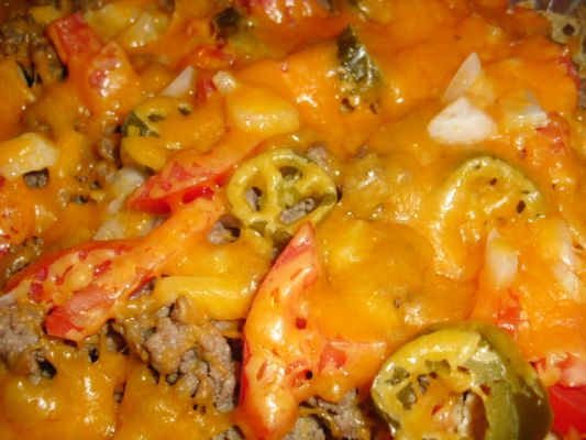 - Top tortilla chips with brisket and vegetables mixture. Sprinkle sharm cheddar cheese on top.2 cups shredded sharp cheddar cheese