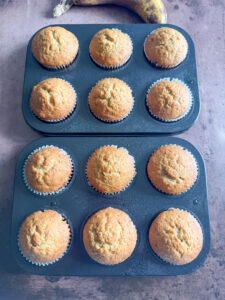 - Baking Soda – Reacts with the acidity in the ripe bananas to help the muffins rise and stay tender.