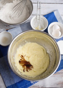 - Add the eggs one at a time, mixing well after each addition. Scrape down the sides of the bowl as needed to ensure everything incorporates evenly.