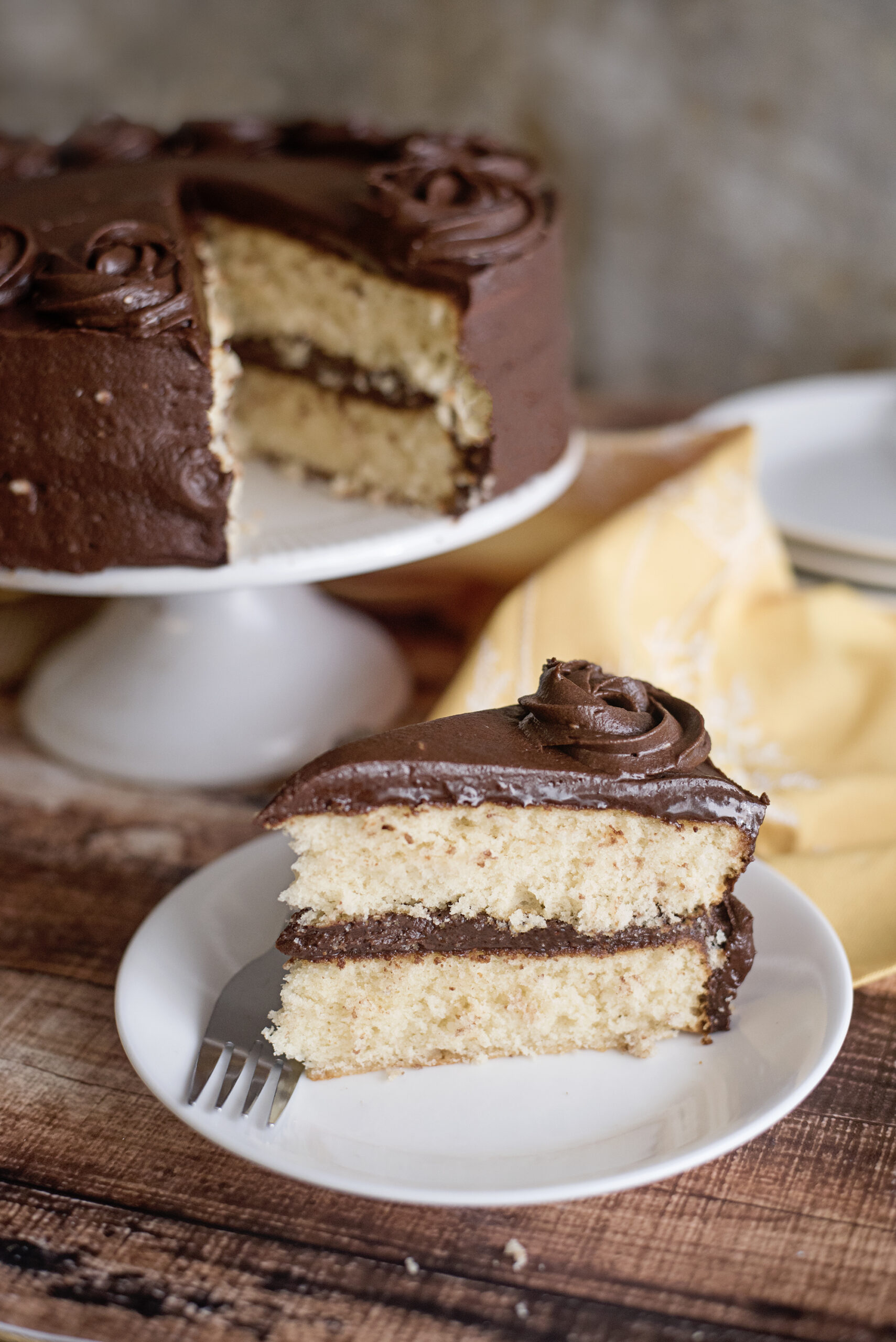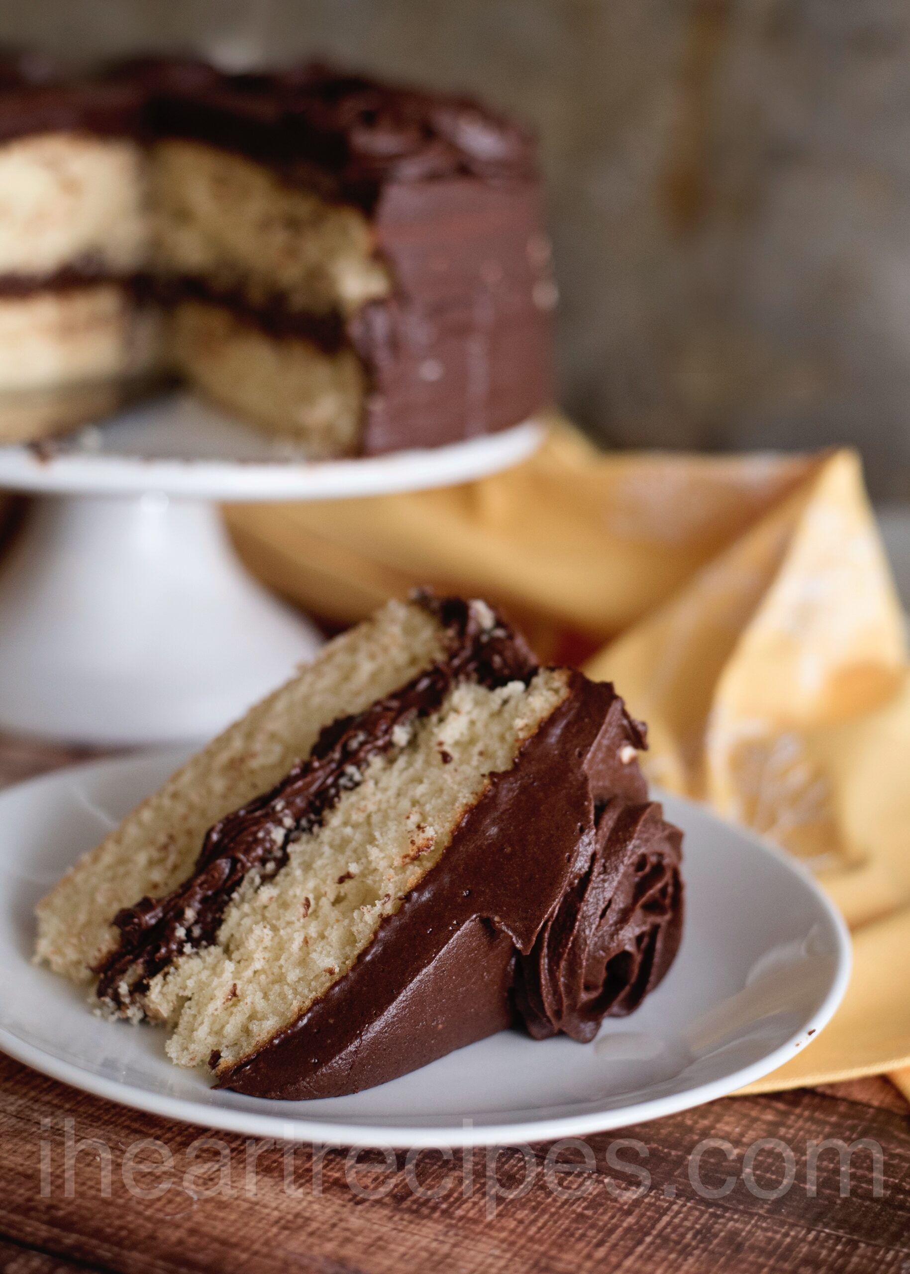 Yellow cake tastes richer and more buttery, which makes it perfect for chocolate frosting. That classic combination never goes out of style.