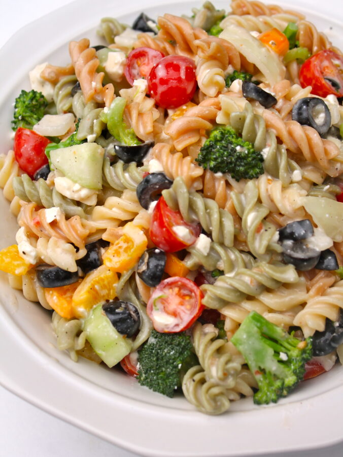 Hey Cousins! Let’s chat about one of my favorite summertime dishes: pasta salad! If y’all have been around I Heart Recipes for a while now, you’ll know I love pasta salad. You name it, I got a recipe for it – classic Italian pasta salad, macaroni salad, shrimp salad, or something with a little more zing like dill pickle and ranch pasta salad. If there’s one thing that’s a summertime staple, it’s a fresh, tangy, cold pasta salad.Â