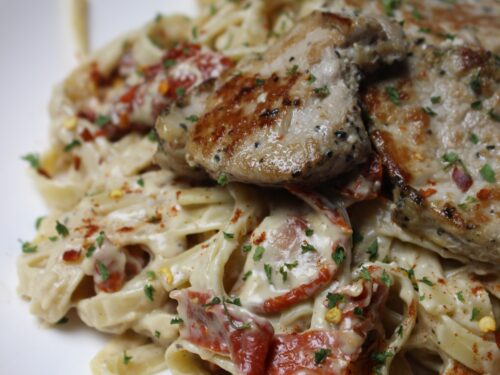 Sun-Dried Tomato Alfredo with Grilled Pork
